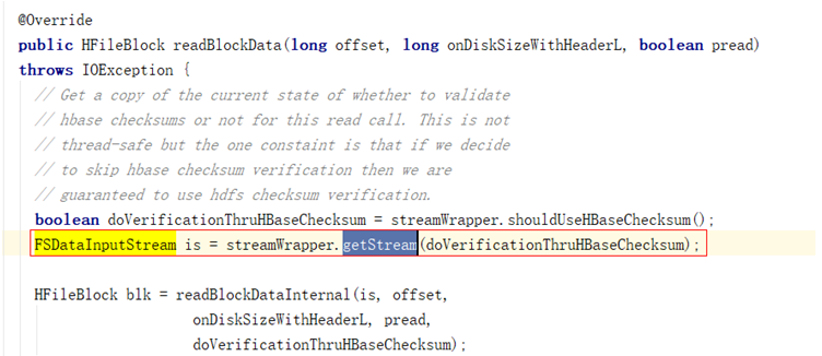 - RegionSever创建Scanner后会调用readBlockData通过FSDataInputStream读取HDFS上的数据;