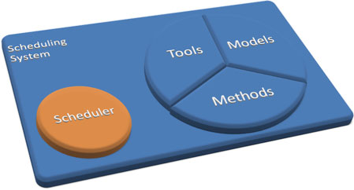 一般意义上的调度定义为将资源分配给任务,调度系统定义为支持公司中与调度相关的决策的模型(调度问题的表示)、方法(从调度模型中获得有效解决方案的过程)和工具(嵌入模型和方法以支持调度决策问题的软件设备)的集合。这三个要素受到组织环境(做出与计划相关的决策)的严重影响。调度决策通常被集成到更一般(显式或隐式)的决策系统中,该决策系统影响(并受其影响)调度决策。上述决策系统不限于单个公司,而是沿着由独立企业组成的整个供应网络延伸。