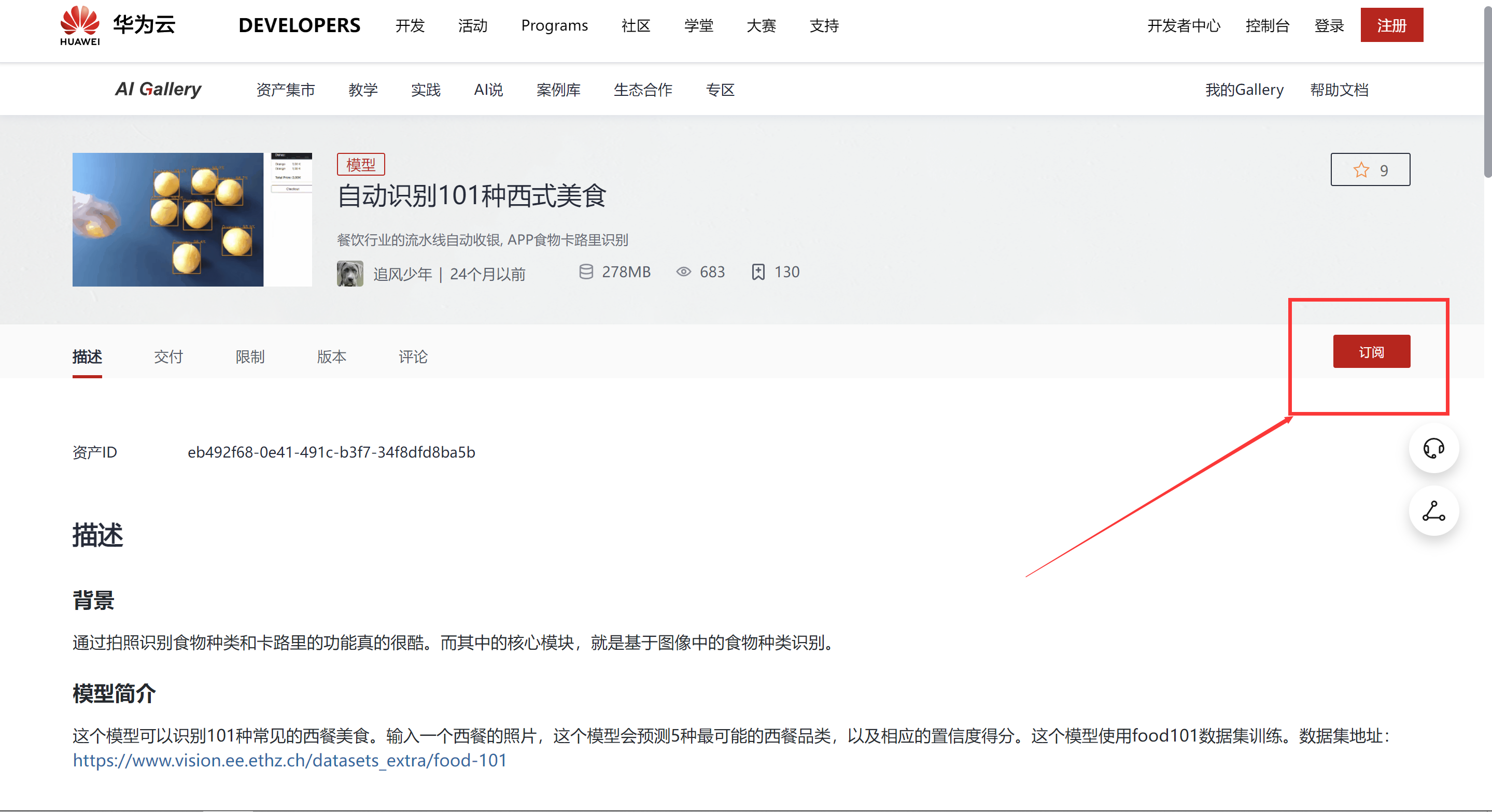 本教程以《自动识别101种西式美食》为例:自动识别101种西式美食 (huaweicloud.com)