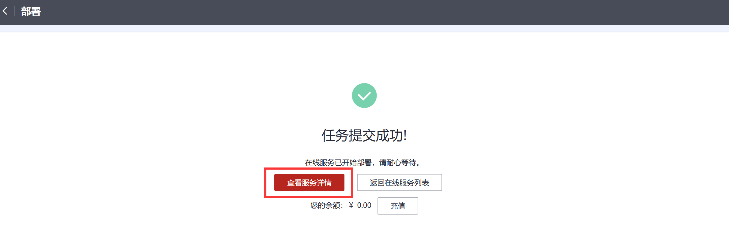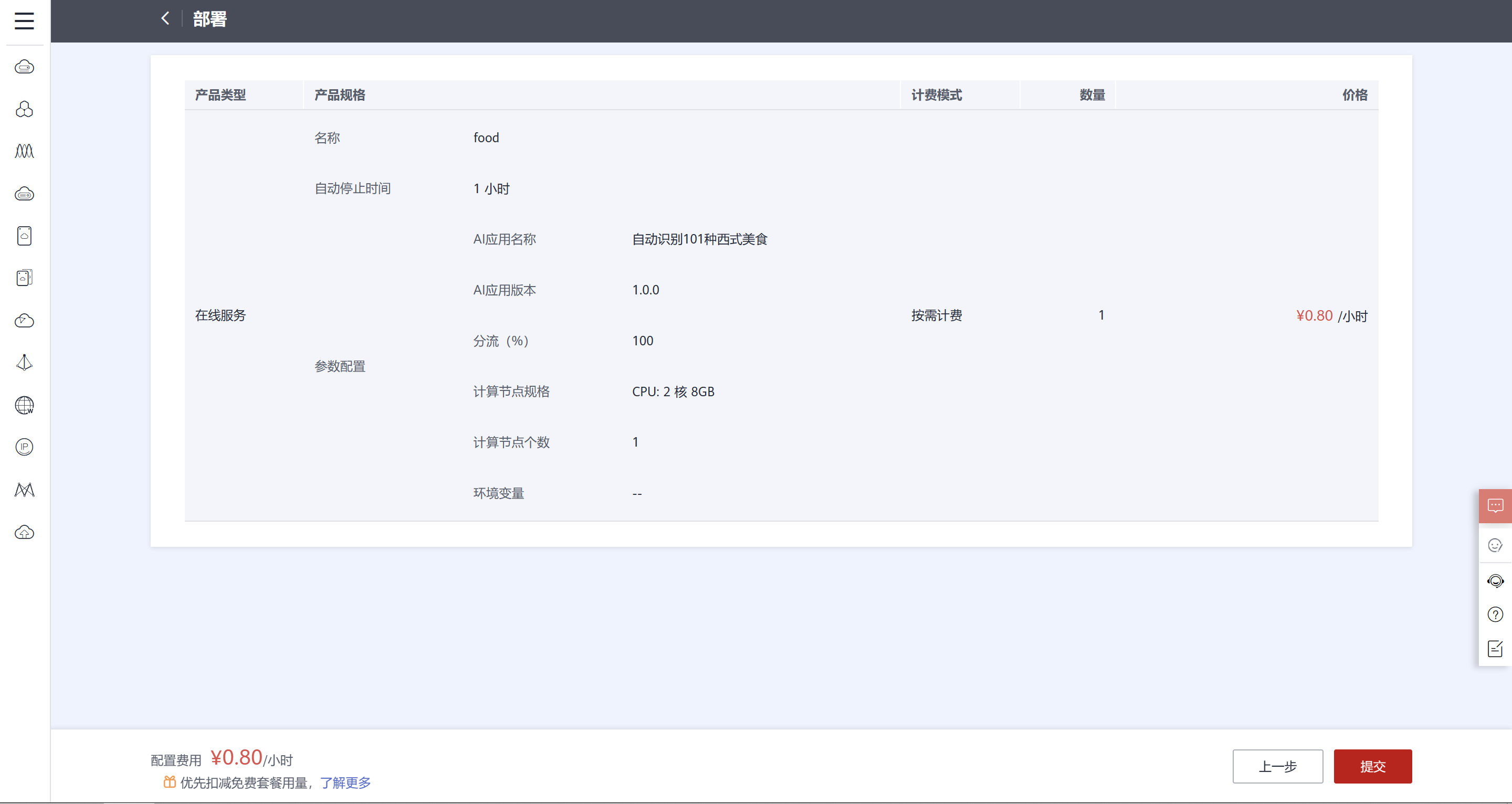 二次确认服务配置,点击“提交”即可进入模型部署状态。