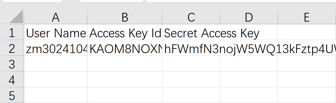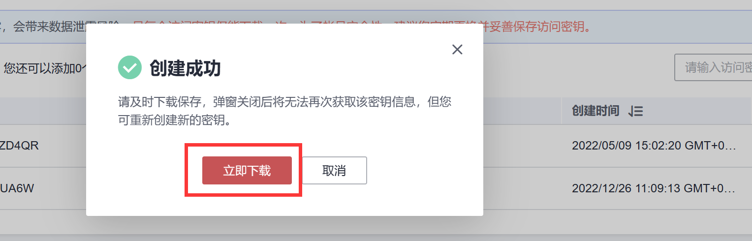 访问秘钥 ID:上一步“获取访问秘钥”步骤中下载的excel中Access Key Id字段对应的值