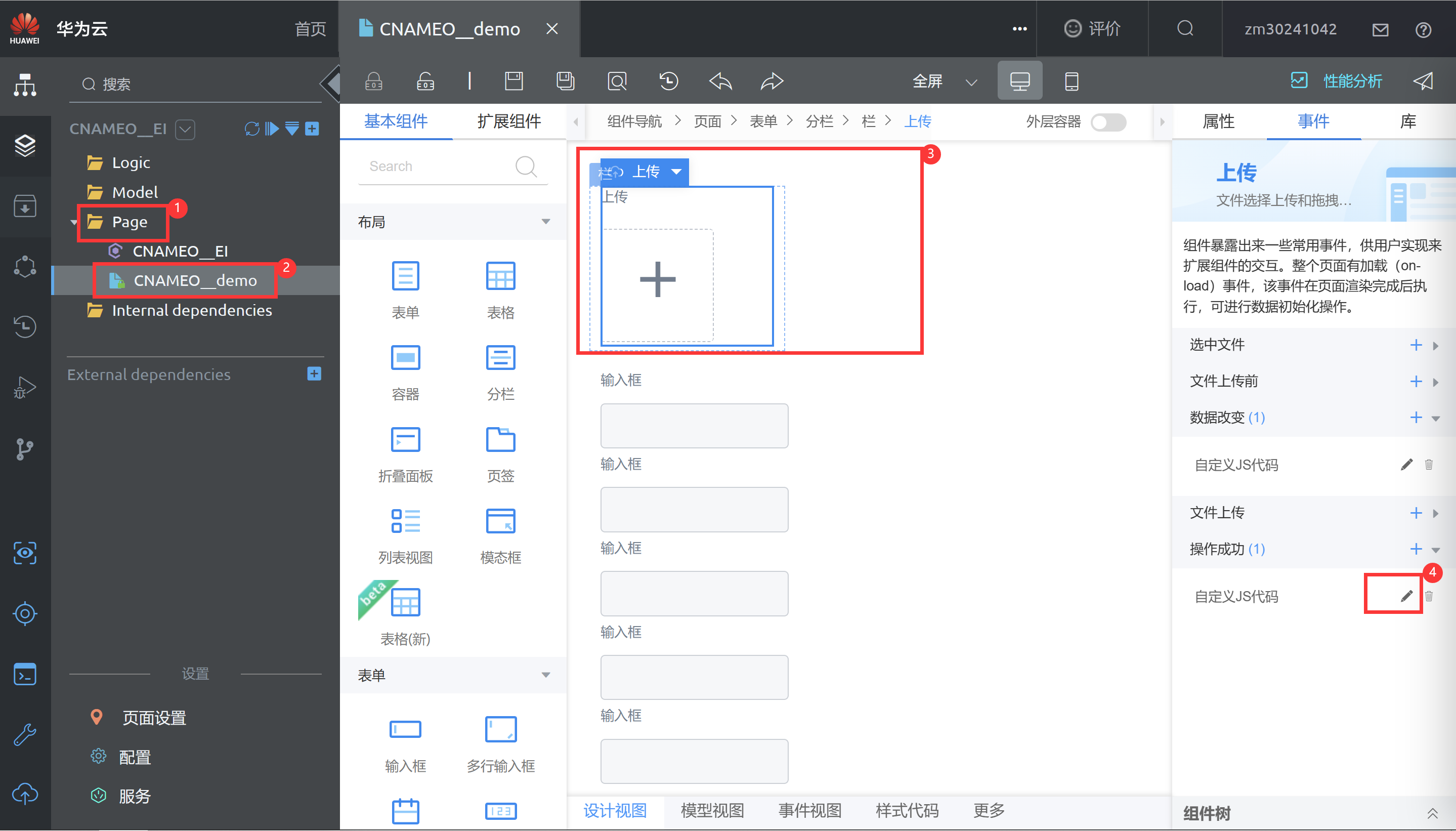在 page 文件夹中找到 xxx_demo 文件,双击打开,依次点击图示位置,打开页面代码编辑页面。