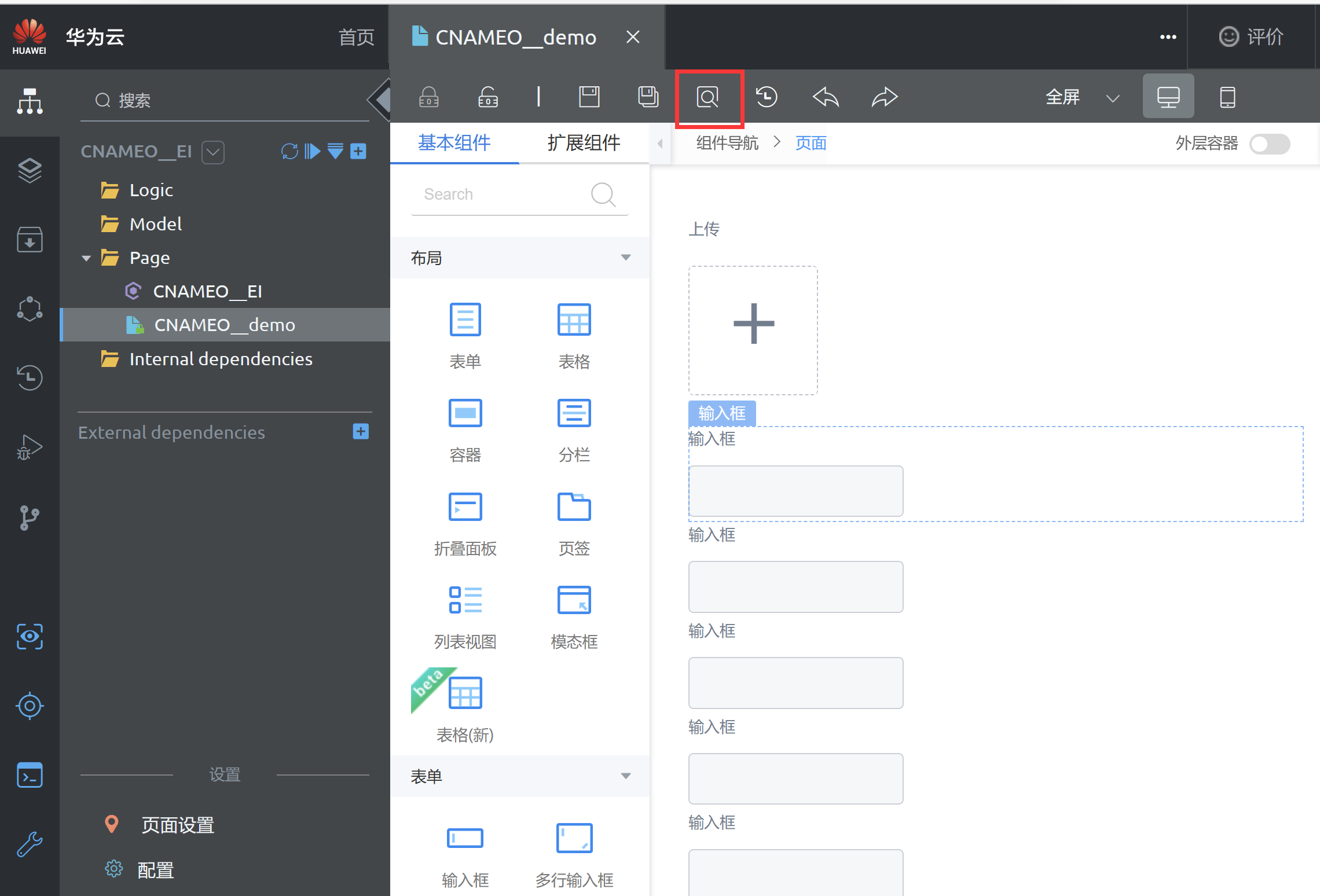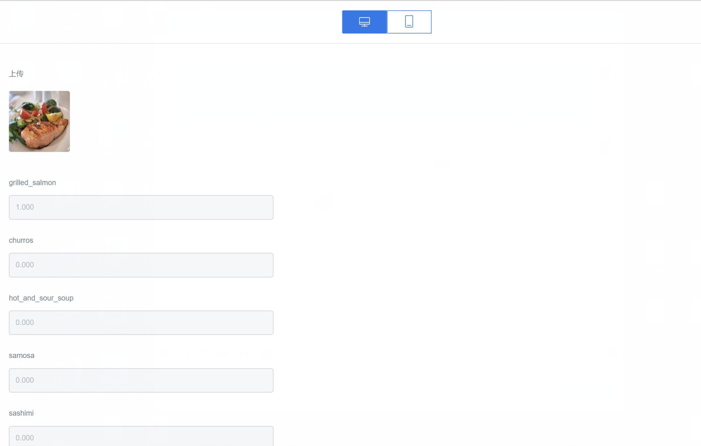 在“6.2 修改标准页面”创建的页面保存后,点击预览按钮,在预览页面上传图片后,等待几秒,有数据返回即可。