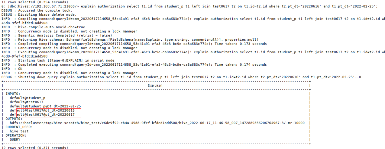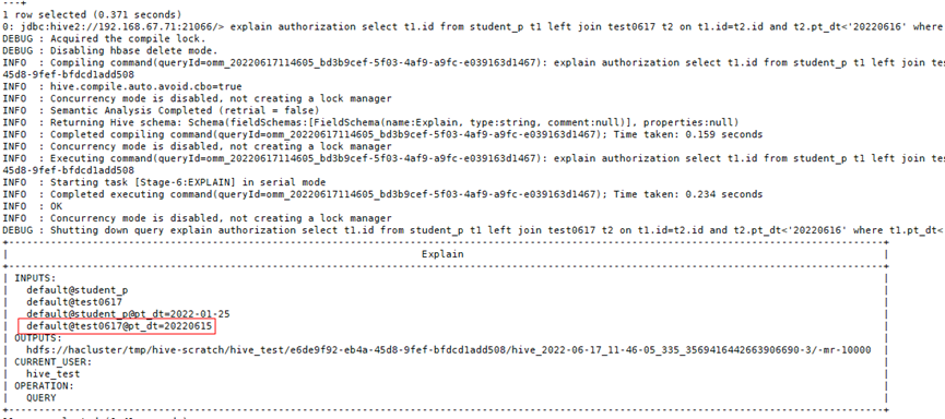 打印执行计划可以看到,20220617分区不在扫描,只扫描指定的分区