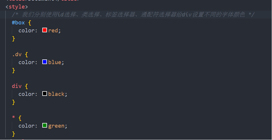 1、如果一个元素使用了多个选择器,则会按照选择器的优先级来给定样式。