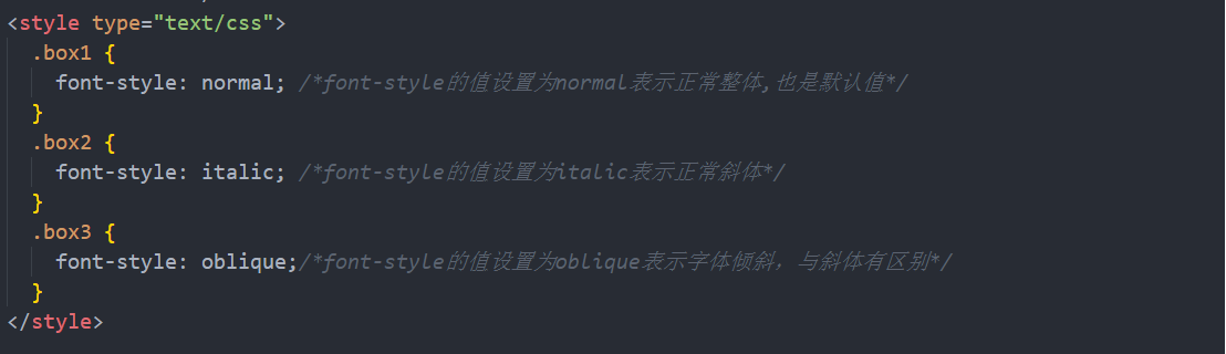 4、oblique为设置倾斜的字体,强制将字体倾斜。