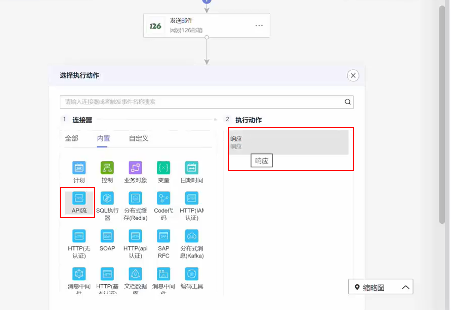 在添加执行动作中选择邮件连接器,填写邮件地址、主题和内容。
