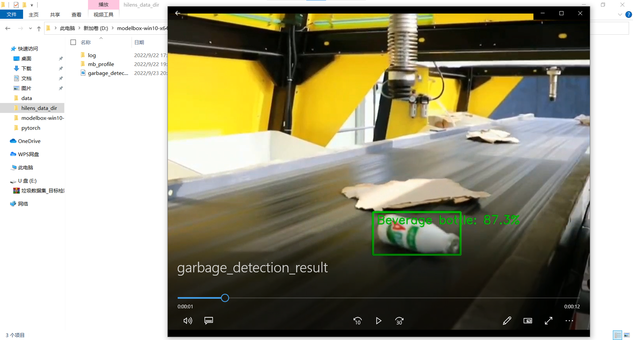 运行结束后在hilens_data_dir目录下生成了garbage_detection_result.mp4文件,可以打开查看: