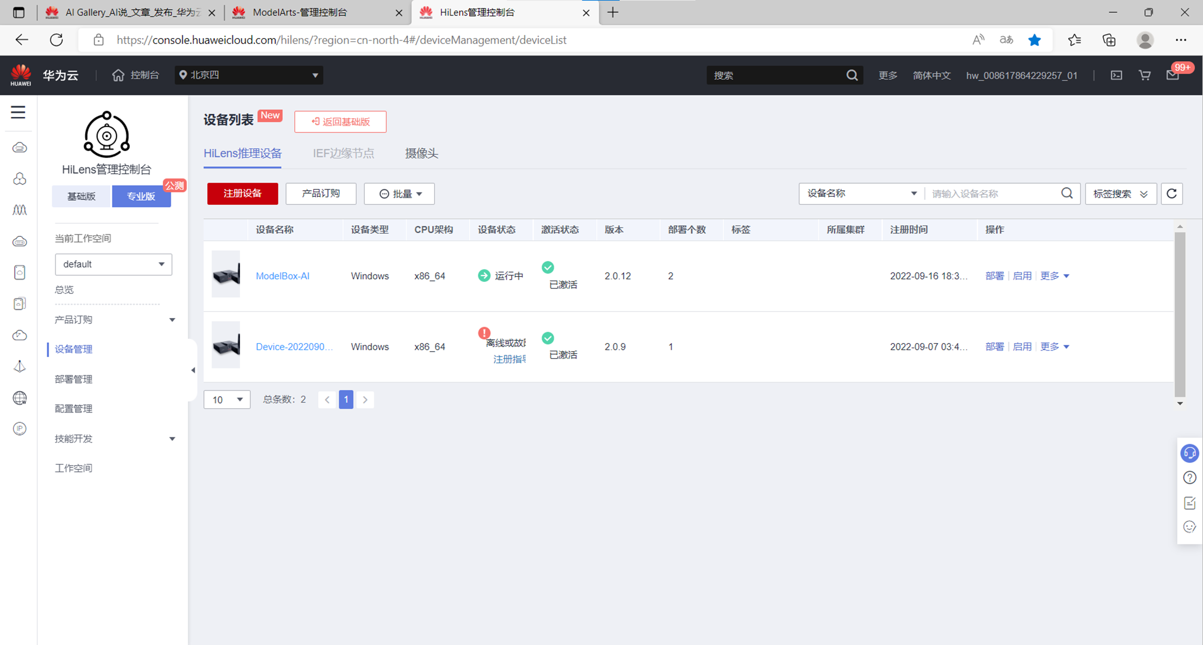 在专业版设备管理中选择一个开发板,