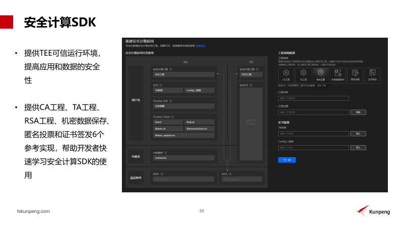 而鲲鹏开发框架基于机密计算TrustZone套件,向开发者提供了安全计算SDK,从硬件架构上提供可信运营环境TEE,在应用被系统攻破后,黑客也无法获取用户环境,保护了应用和数据的安全性。