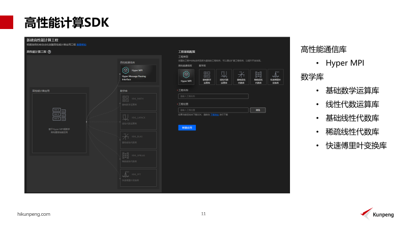 鲲鹏亲和开发框架面向HPC场景提供Hyper MPI和数学加速库,助力开发者构建高性能应用。