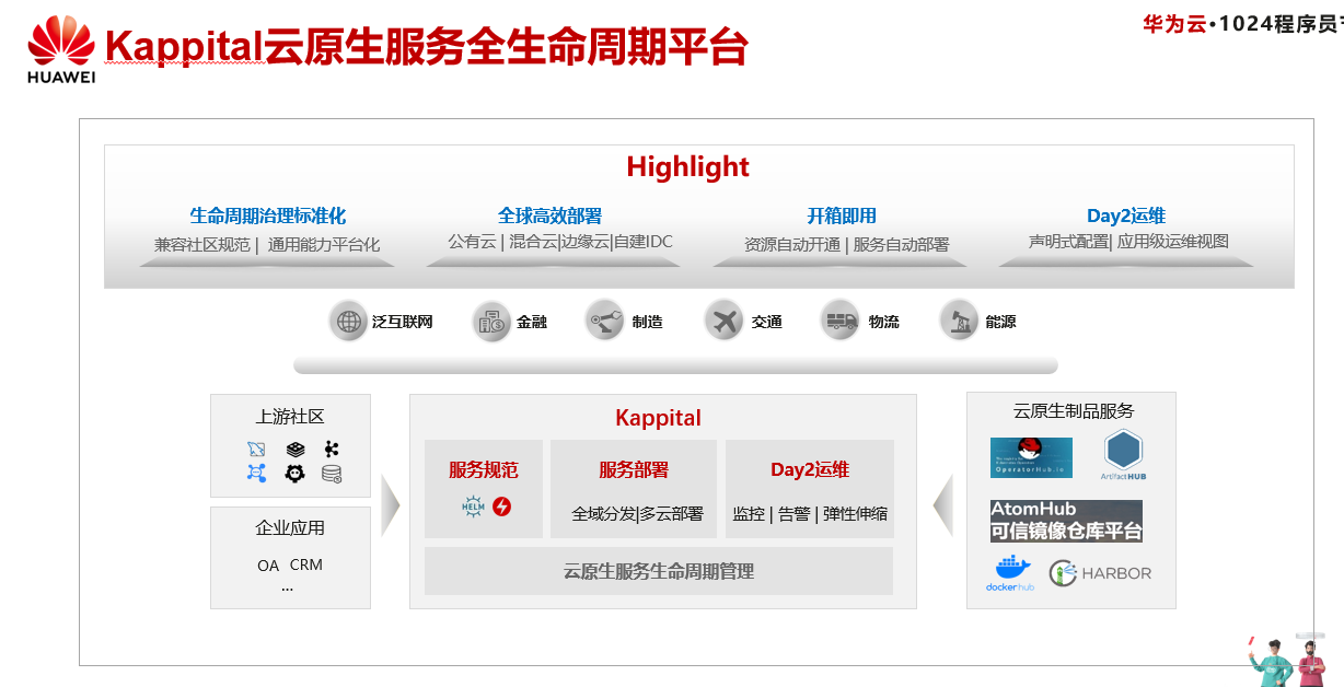 一是云原生服务中心OSC的核心能力开源,推出分布式云原生服务Kappital,旨在帮助开发者快速构建云原生服务,为云原生服务提供统一的打包、部署、管理标准和一致性使用体验,加快云原生服务的落地,Kappital主要提供统一的服务生态、全场景的部署,全生命周期治理,开箱即用的运维能力四个方面能力。
