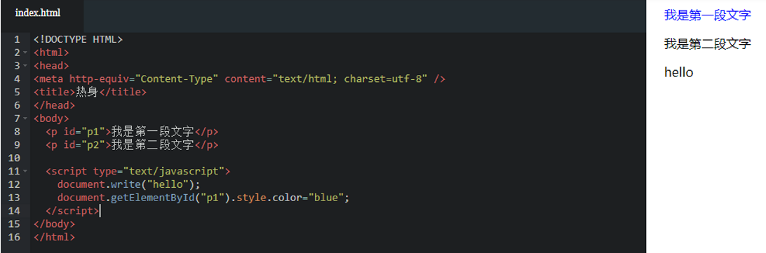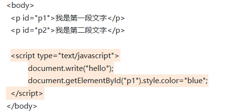注意: javascript作为一种脚本语言可以放在html页面中任何位置,但是浏览器解释html时是按先后顺序的,所以前面的script就先被执行。比如进行页面显示初始化的js必须放在head里面,因为初始化都要求提前进行(如给页面body设置css等);而如果是通过事件调用执行的function那么对位置没什么要求的。
