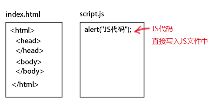 注意:在JS文件中,不需要<script>标签,直接编写JavaScript代码就可以了。