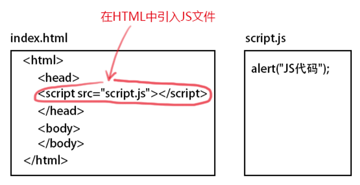 JS文件不能直接运行,需嵌入到HTML文件中执行,我们需在HTML中添加如下代码,就可将JS文件嵌入HTML文件中。