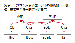 在采用建设全局统一数据平台的方式,解决了系统级的数据割裂问题,还会面临下一个问题:一方面因为业务使用数据的方式不同,数据根据使用方式已经采用了10+种引擎、组件,散落在高性能点查、明细查询、全文检索等数据组件中;另一方面,SQL语言因为数据库在近几十年来的不断普及,其以易部署、易使用、操作灵活,为各企业培养了自己的DBA等IT专业人才。当客户深度使用数据的时候,客户需要懂业务的分析师能统一操作界面,使用业界通用的、自己熟知的方法和工具,直接操作数据,以敏捷应对外部环境变化,保持数据信息的鲜活和整个组织经营的敏捷灵活性。此时数据平台的入口分散、技术门槛高就成为数据平台高效使用的另外一大障碍。