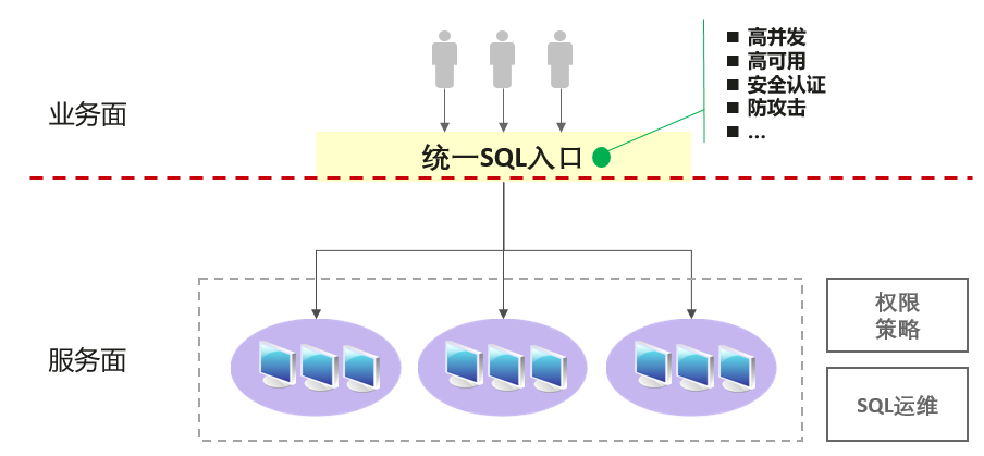 “统一SQL入口”可以极大的降低业务面的对接复杂度与使用成本,使得业务使用方、最终用户只需要关注SQL业务本身即可,而不必过多关注技术平台层面的使用细节。