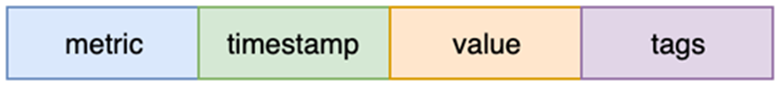 OpenTSDB的数据模型是基于tag的单值模型,即写入的每行记录(数据点)中只有一个指标值,如下所示: