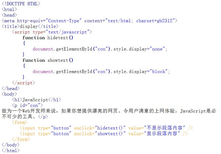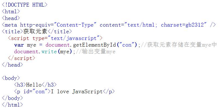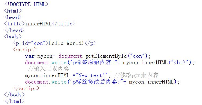 我们通过id="con"获取<p> 元素,并将元素的内容输出和改变元素内容,代码如下: