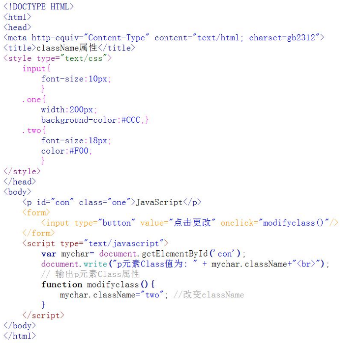 看看下面代码,获得 <p> 元素的 class 属性和改变className: