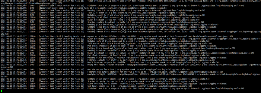 spark.executor.log.level = INFO => spark.executor.log.level = DEBUG