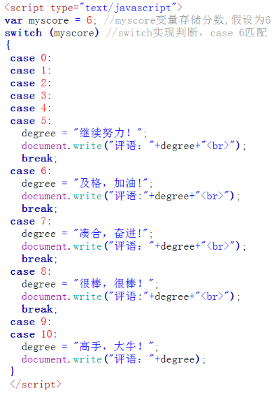 假设评价学生的考试成绩,10分满分制,我们按照每一分一个等级将成绩分等,并根据成绩的等级做出不同的评价。