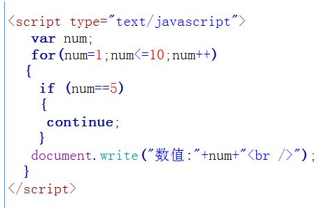 上面的循环中,当特殊情况发生的时候,本次循环将被跳过,而后续的循环则不会受到影响。好比输出10个数字,如果数字为5就不输出了。
