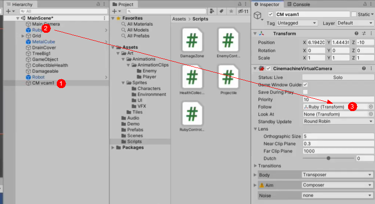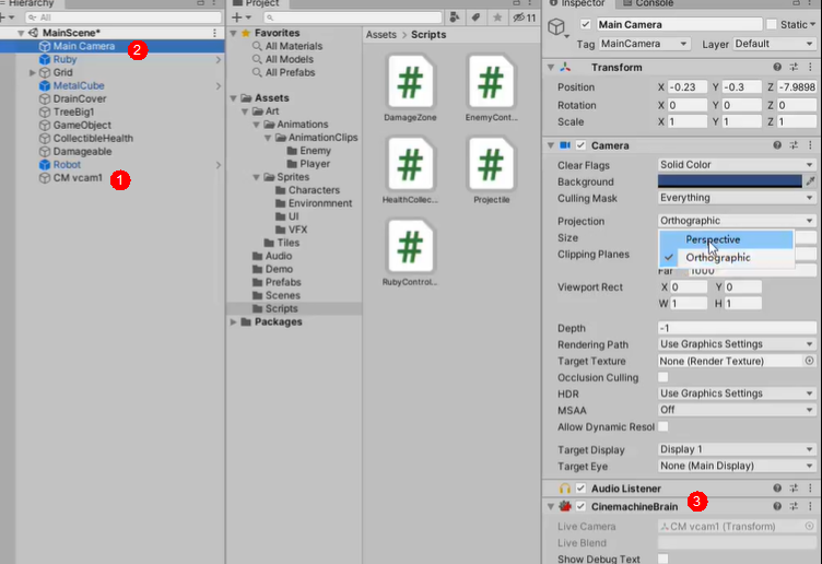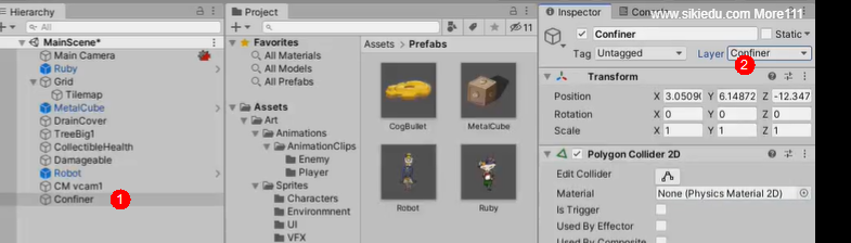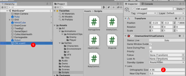 Camera组件尺寸大小,控制摄像机视角范围size和cinemachine组件的orthorphics的size,size值的是高度