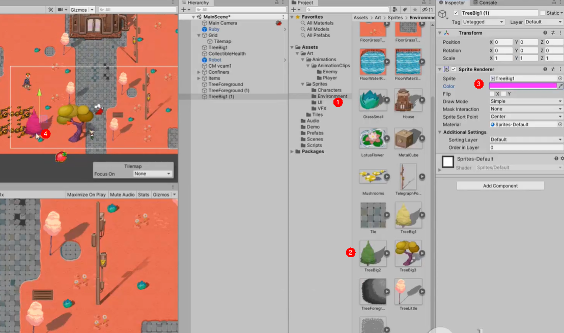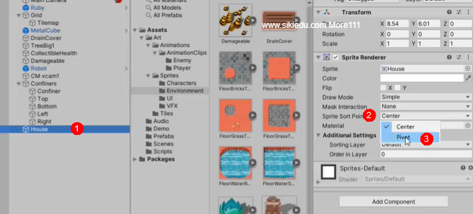 一般情况下,人物在物品上的时候,人物在上,物品在下。但是如果我们要实现,人物在物品某个部分时在前,某个部分时在后的场景,这个时候可以通过pivot去设置