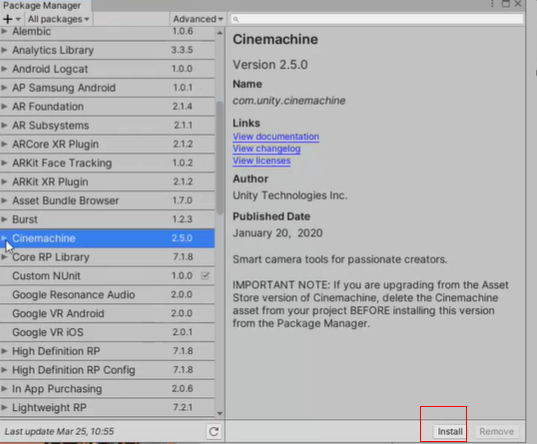 路径:window-package manager-cinemachine-install