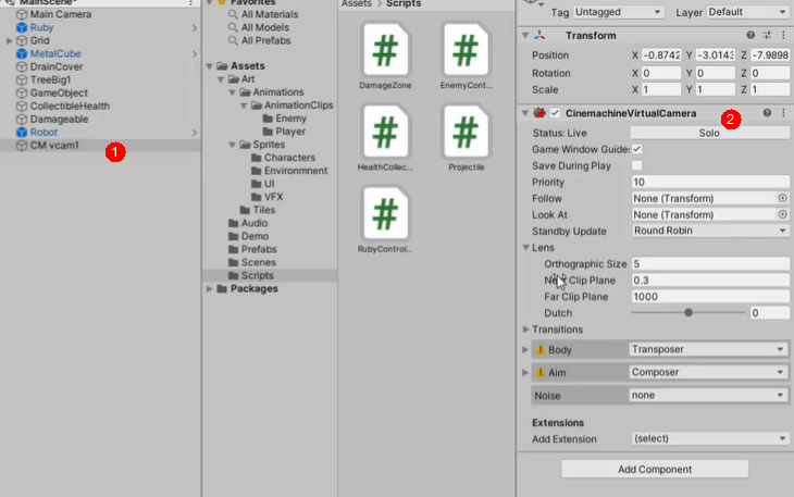 注意:添加了cinema虚拟摄像机后,主相机会自动挂载这个组件,如下图
