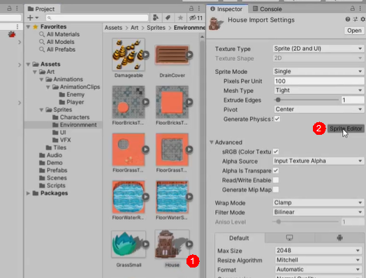 选择sprite editor,选择,点击apply