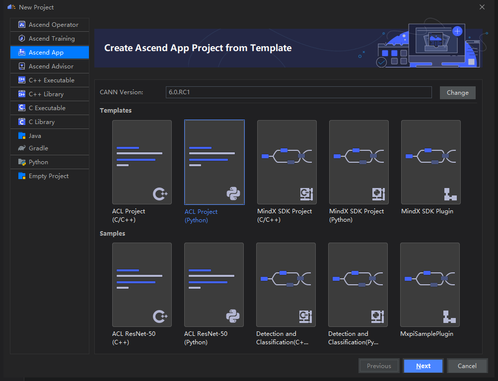 选择Ascend App 项目,选择ACL Project(python)项目