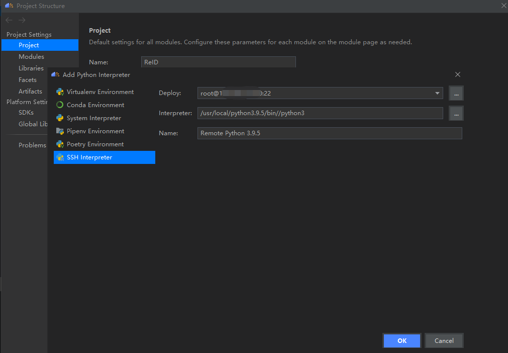 选择ssh interpreter
