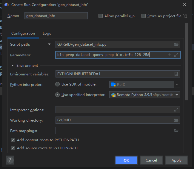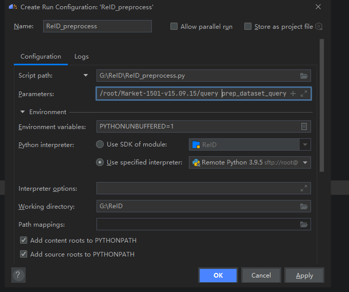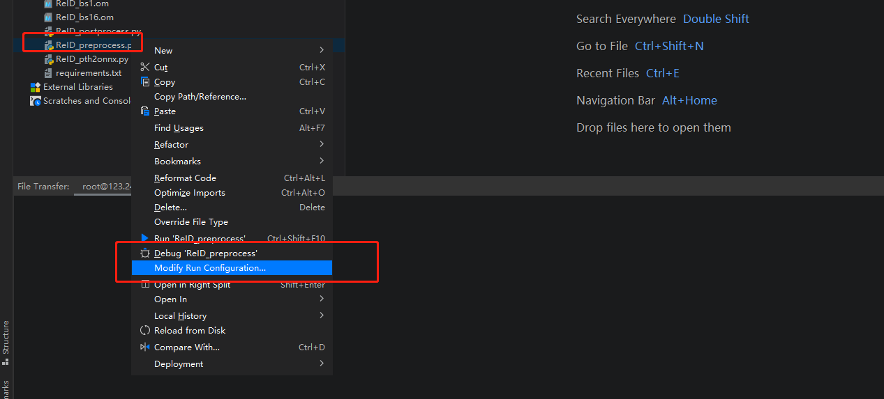 数据预处理将原始数据集转换为模型输入的数据,使用ReID_preprocess.py(找到该文件,然后右键选择Modify Run Configuration)