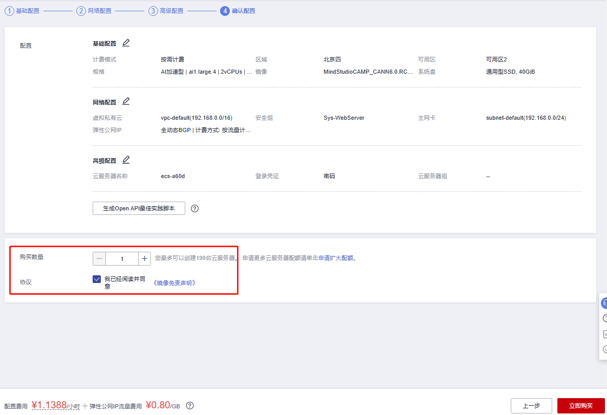 确认配置完成之后,选择“立即购买”。