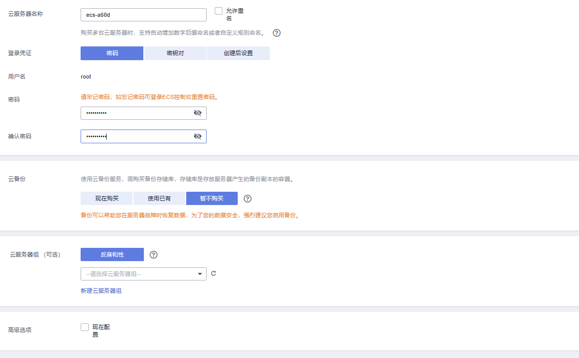• 云服务器组:无。