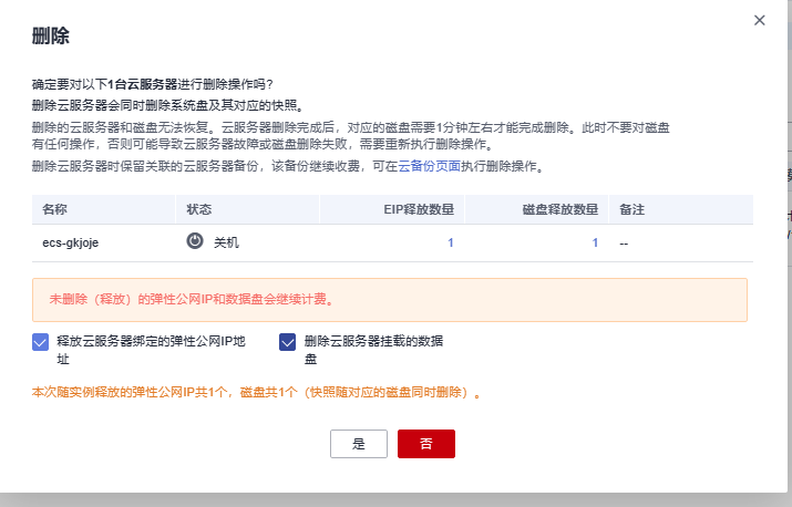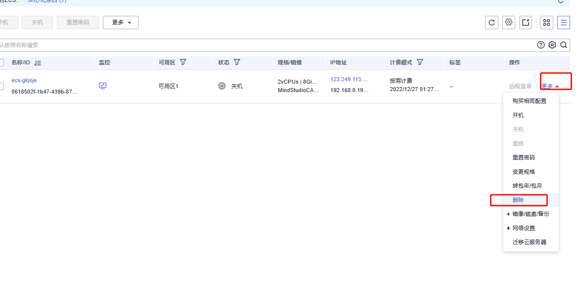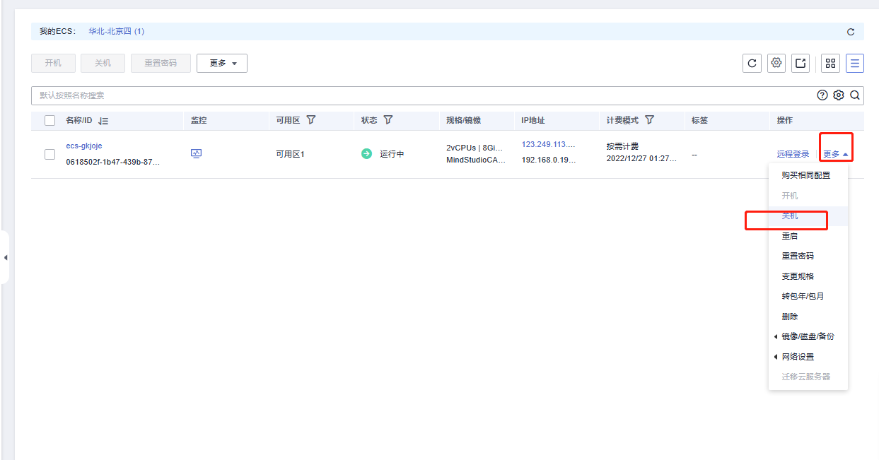 关闭ECS弹性云服务器
