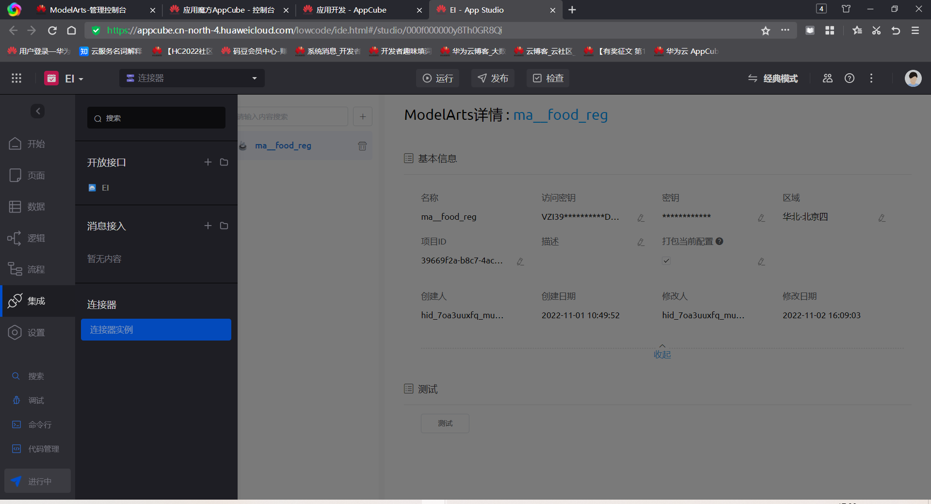 本次请求的服务端采用的是ModelArts的在线服务;而客户端则使用AppCube来搭建一个零代码应用