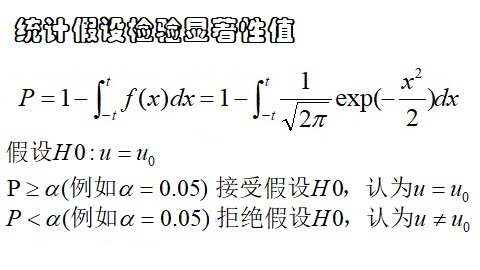 如果P≥α,则以α的显著性水平接受假设H0,认为u=u0。