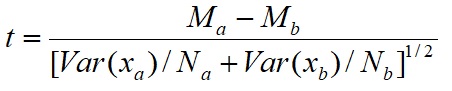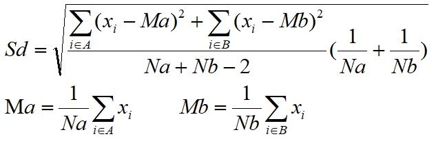 式中Ma和Mb是样本A和样本B的平均值,Na和Nb是样本A和样本B的样本个数,Var(xa)和Var(xb)是样本A和样本B的方差。