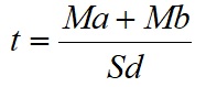 两组数据的样本点数分别为Na和Nb,计算得到两组数据的平均值分别为Ma和Mb,计算均值之差的标准误Sd: