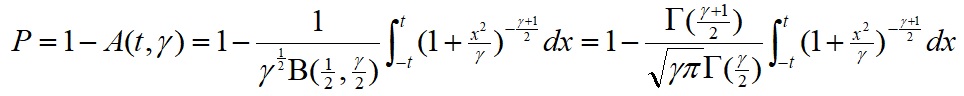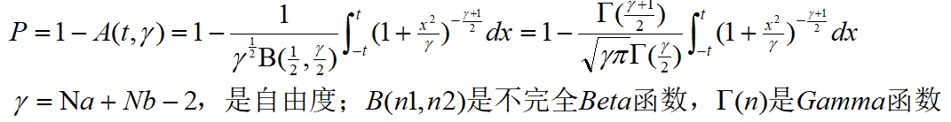 统计量t服从自由度为Na+Nb-2的学生分布,计算t值的显著性值P: