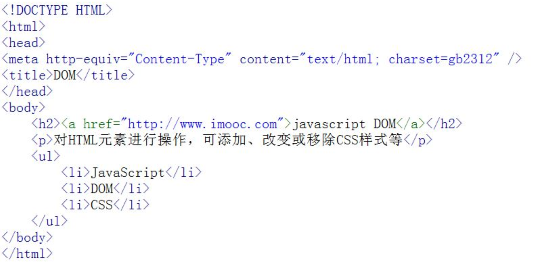 3. 属性节点:元素属性,如<a>标签的链接属性href="http://www.imooc.com"。