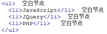2. 文本节点:向用户展示的内容,如<li>...</li>中的JavaScript、DOM、CSS等文本。