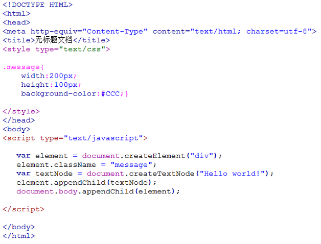 我们来创建一个<div>元素并向其中添加一条消息,代码如下:
