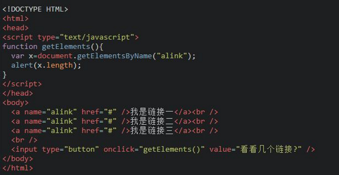 与getElementById() 方法不同的是,通过元素的 name 属性查询元素,而不是通过 id 属性。