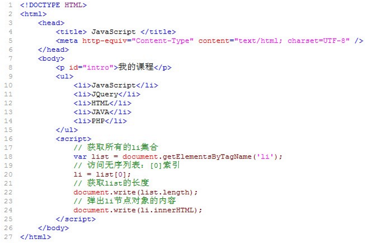 看看下面代码,通过getElementsByTagName()获取节点。
