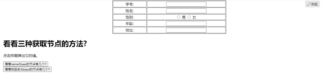 - Name 是他的名字,可以重复。所以通过getElementsByName获取名字相同的人集合。