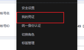 右上方点击:用户名 > 我的凭证,选择 API凭证
